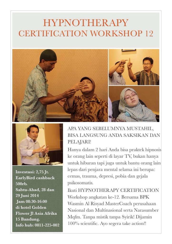Dibuka kembali HCW angkatan 12. Rasakan manfaat luar biasa dari hypnotherapy. http://javahypnotherapy.com/2014/02/27/manfaat-hypnotherapy/